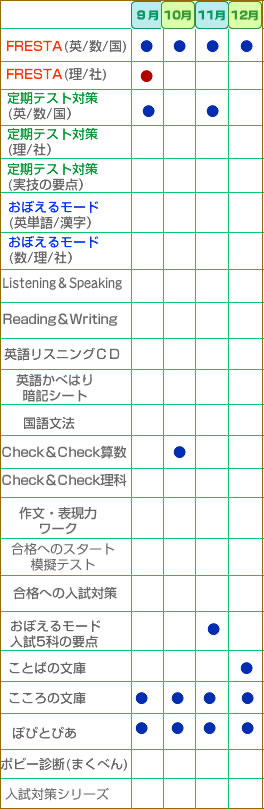 28年度中学POPY1年生教材配本一覧を学期単位でご紹介します。